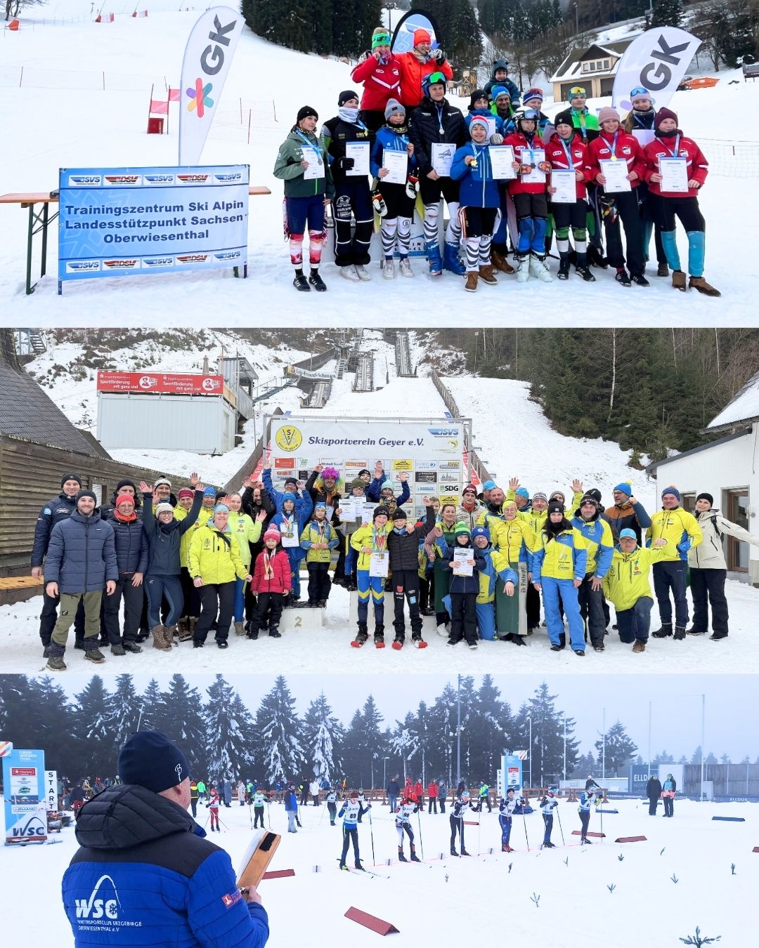 Am 07. und 08. Februar erlebten die sächsischen Wintersportler in den Disziplinen Skilanglauf, Skisprung und Kombination sowie Ski Alpin jeweils zwei großartige, aber auch anstrengende Tage. Der anfängliche Nieselregen und das anhaltende Tauwetter konnten den gut präparierten Pisten und Laufstrecken in Oberwiesenthal sowie der dicken Kunstschneeauflage auf den Eric-Frenzel-Schanzen und der Max-Liesche-Schanze in Geyer nur wenig anhaben. Unmengen Schnee wurden im Vorfeld geschossen, um die Titelkämpfe am ersten Februarwochenende abzusichern. Zahlreiche ehrenamtliche Stunden haben die beteiligten Skivereine in den letzten Wochen und natürlich während der Wettkämpfe investiert, um dem sächsischen Skinachwuchs tolle Meisterschaften zu bieten. So konnten die Sachsenmeisterschaften gut vorbereitet und letztendlich dank vieler Helfer, Sponsoren und Unterstützung der Städte und Gemeinden ohne Probleme durchgeführt werden.